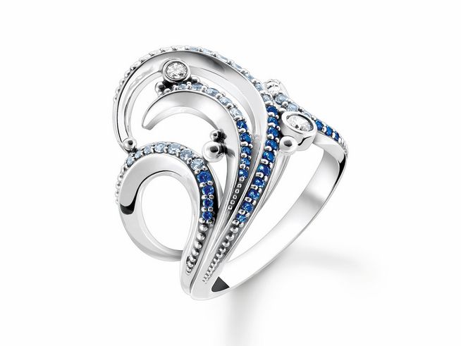 Thomas Sabo, Ring Ocean Wave, TR2378-644-1-54, 925 Sterling Silber, geschw. – synth. Spinell – Zirkonia